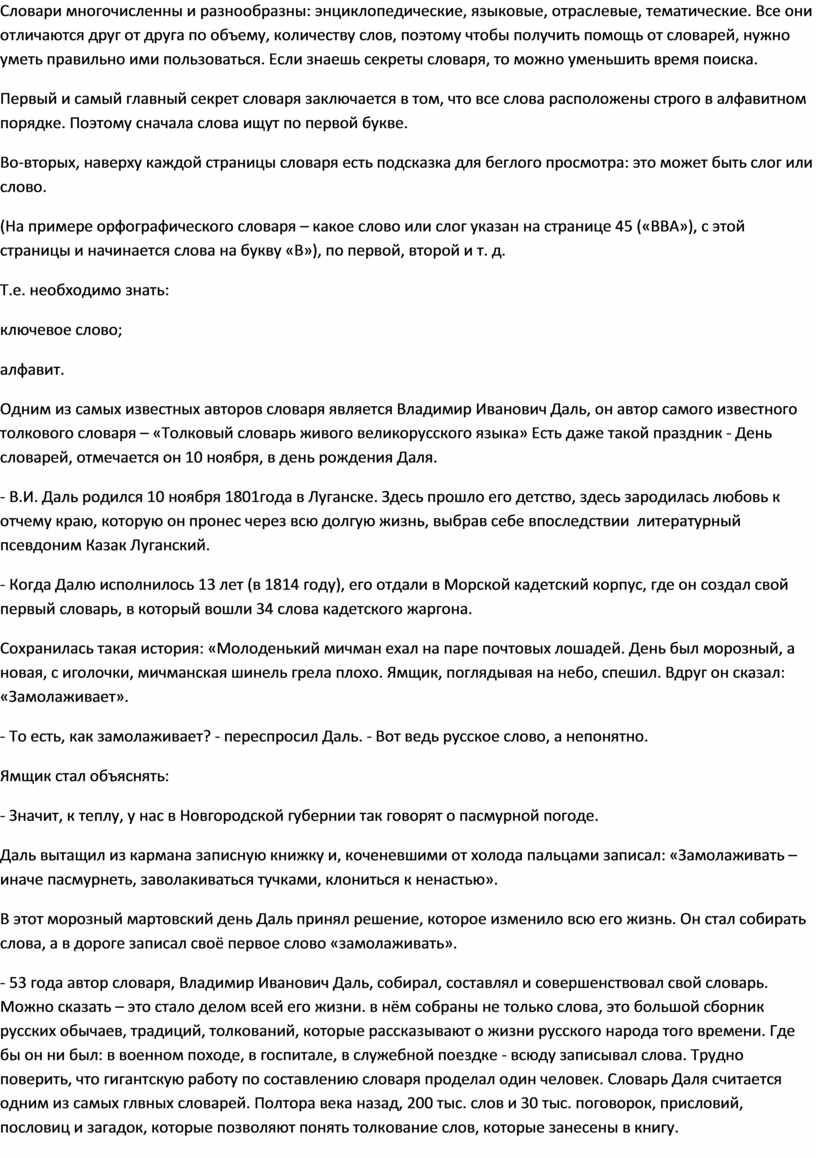 Словари многочисленны и разнообразны: энциклопедические, языковые, отраслевые, тематические. Все они отличаются друг от друга по объему, количеству слов, поэтому чтобы получить помощь от словарей, нужно уметь правильно ими пользоваться. Если знаешь секреты словаря, то можно уменьшить время поиска.