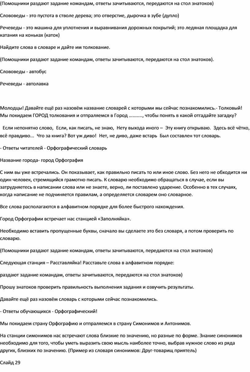 (Помощники раздают словари и задание командам, ответы передаются на стол знатоков, правильность по словарю зачитает библиотекарь).