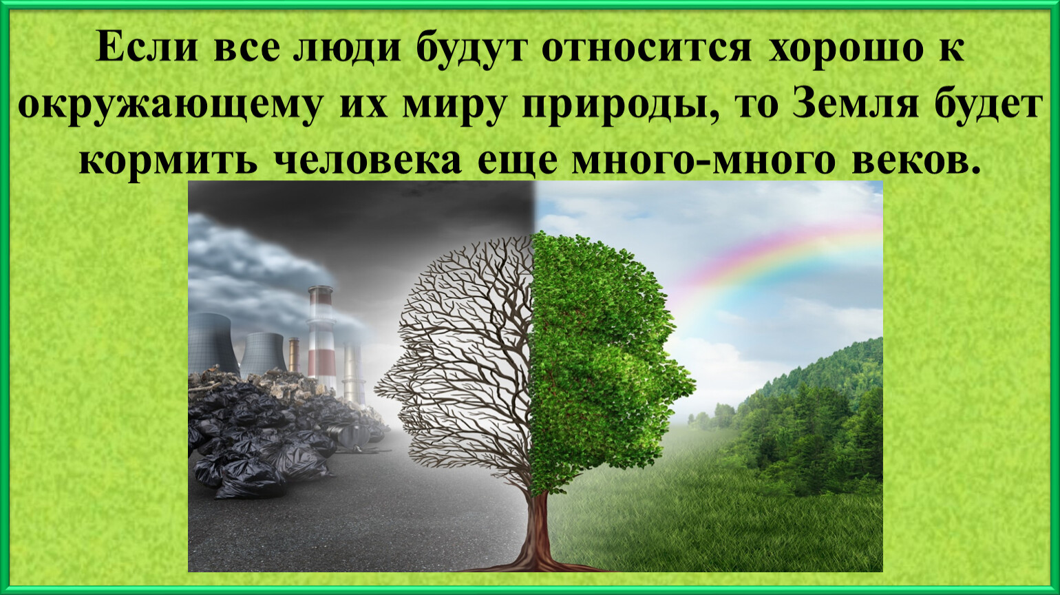 Если все люди будут относится хорошо к окружающему их миру природы, то Земля будет кормить человека еще много-много веков.