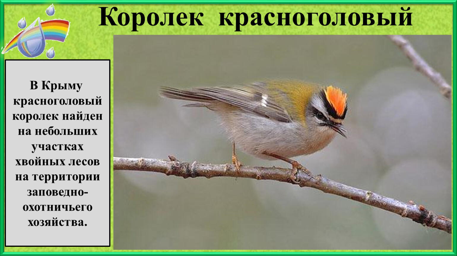красноголовый королек найден на небольших участках хвойных лесов на территории заповедно-охотничьего хозяйства.