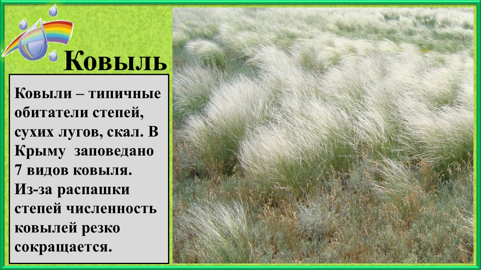 Из-за распашки степей численность ковылей резко сокращается.
