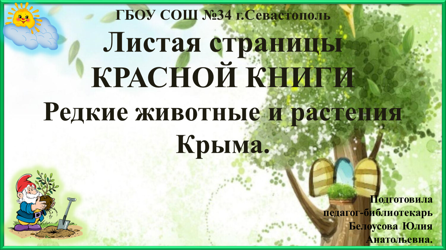 ГБОУ СОШ №34 г.Севастополь Листая страницы КРАСНОЙ КНИГИРедкие животные и растения Крыма.