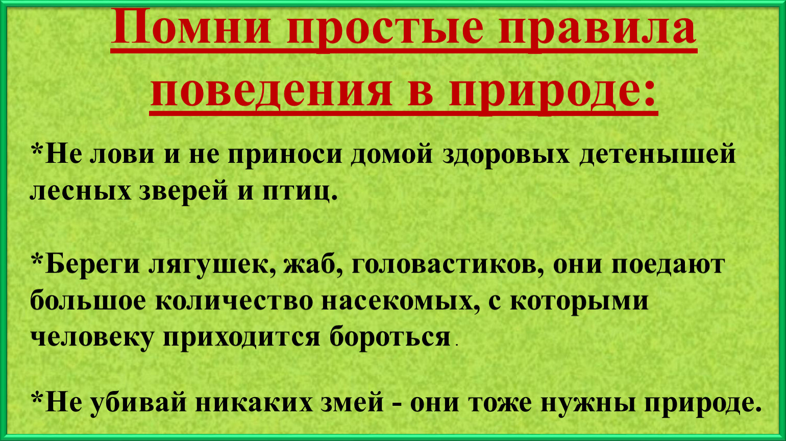 Помни простые правила поведения в природе: