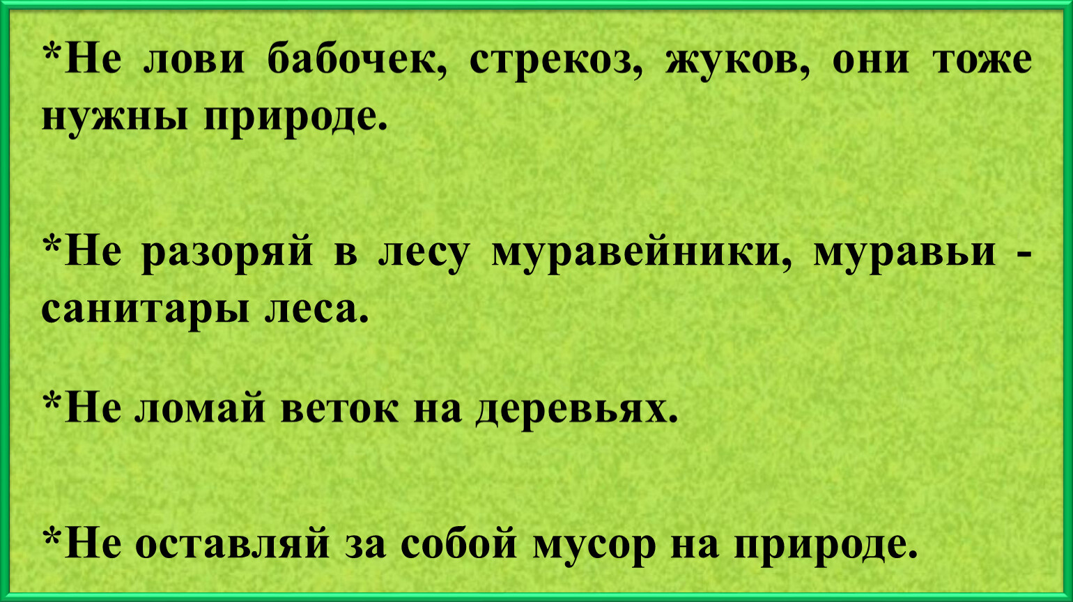 *Не лови бабочек, стрекоз, жуков, они тоже нужны природе.