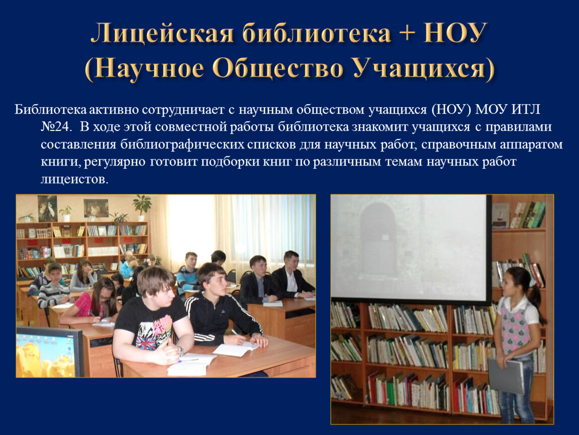 Лицейская библиотека + НОУ (Научное Общество Учащихся)