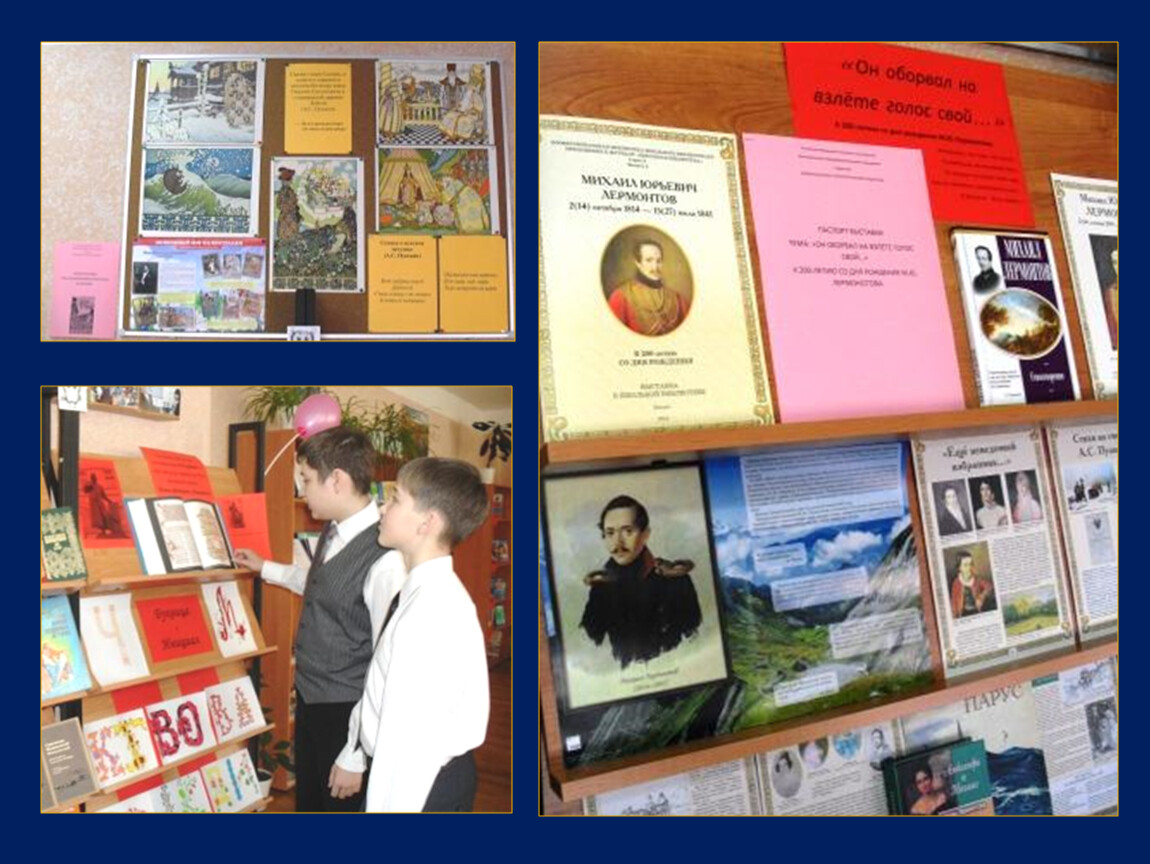 Книжные выставки (представлены фотографии с книжных выставок, проводимых в библиотеке)
