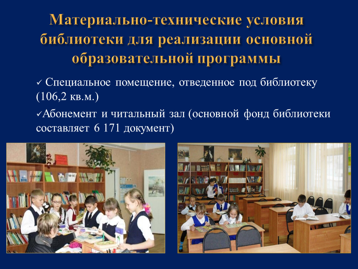 Материально-технические условия библиотеки для реализации основной образовательной программы