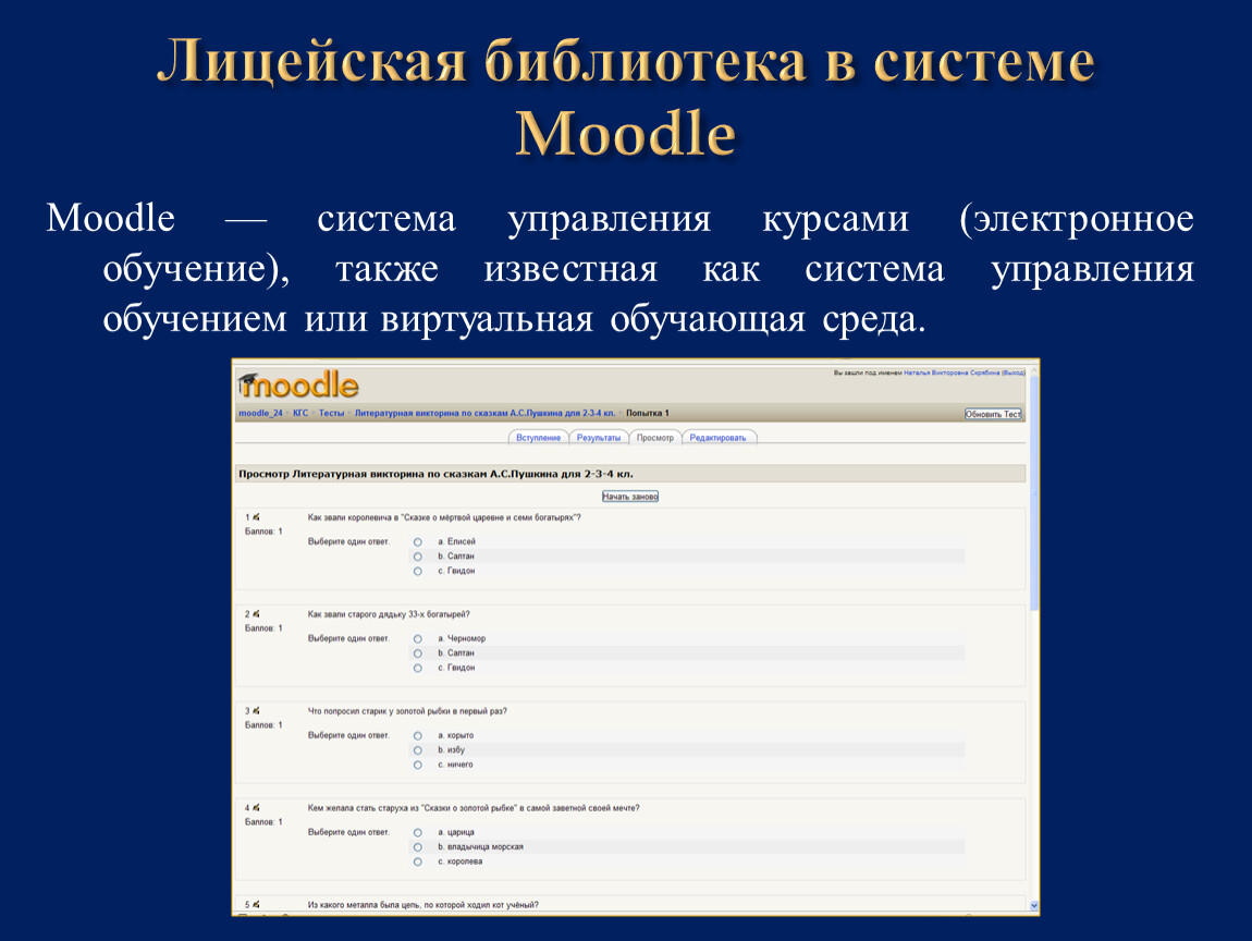 Лицейская библиотека в системе Moodle