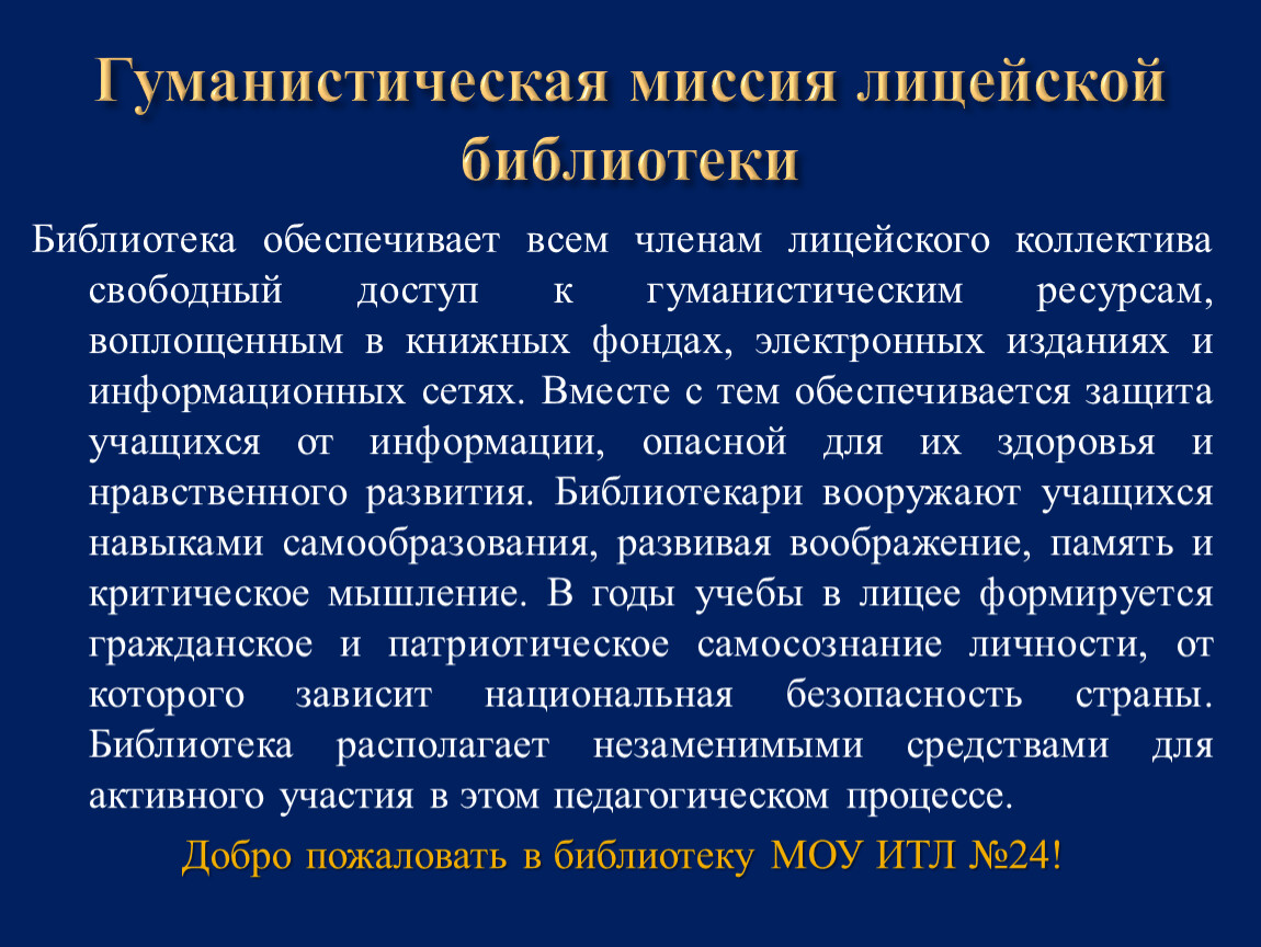 Гуманистическая миссия лицейской библиотеки