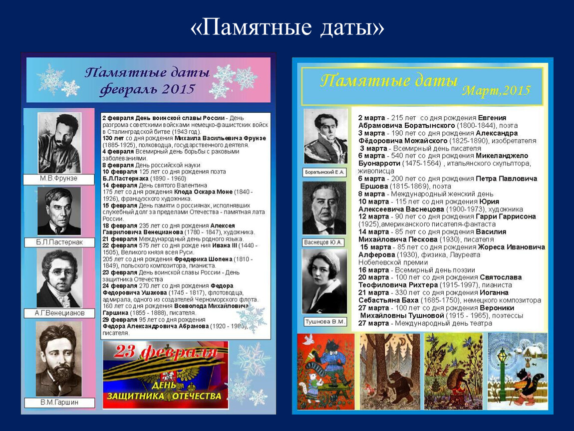 регулярные книжные выставки к юбилейным датам русских и зарубежных писателей;