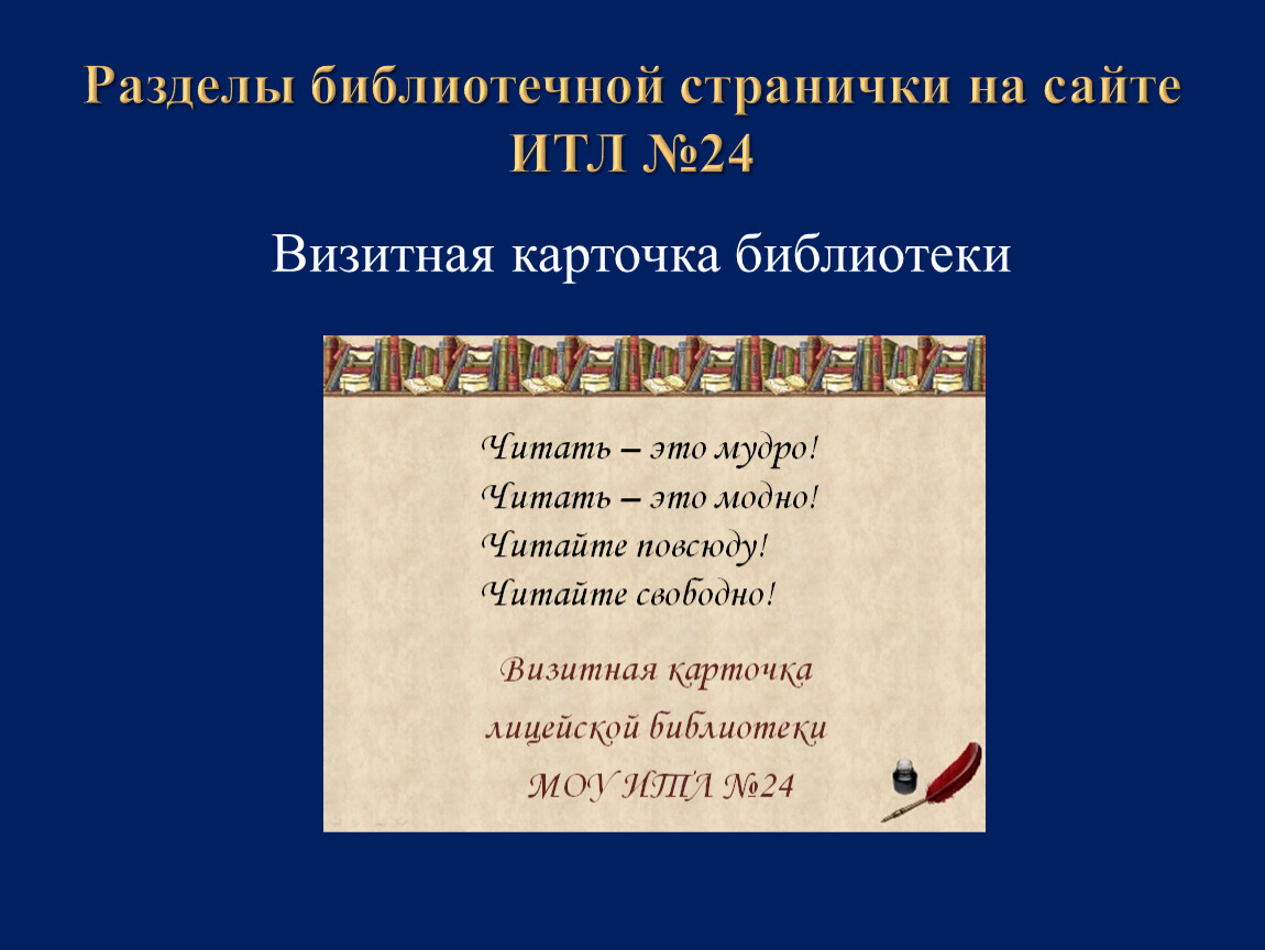 Добро пожаловать в библиотеку МОУ ИТЛ №24!