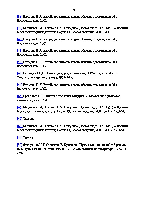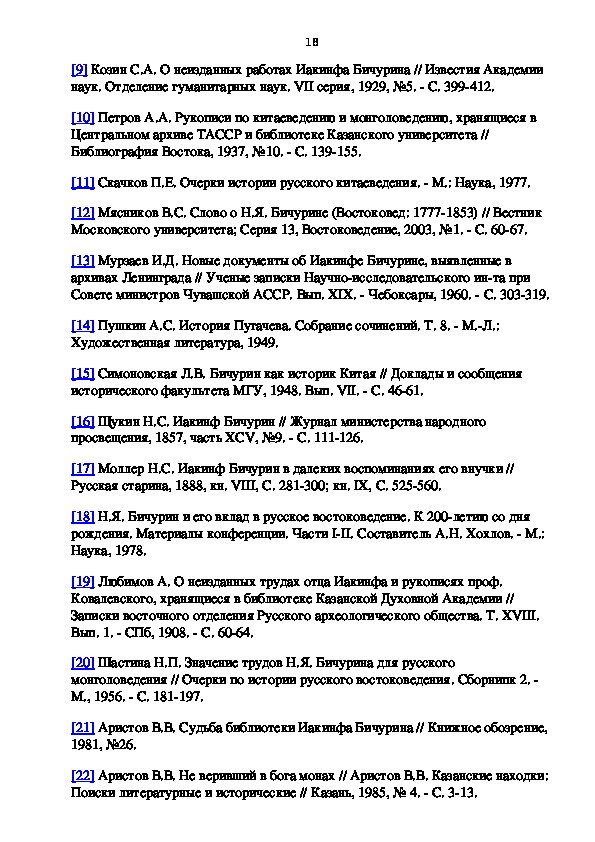 [20] Шастина Н.П. Значение трудов Н.Я. Бичурина для русского