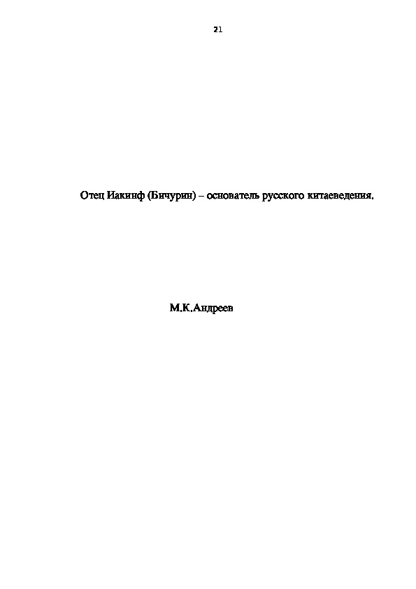 1 Федоренко Н.Т. Иакинф Бичурин, основатель русского китаеведения // Известия АН СССР. Серия