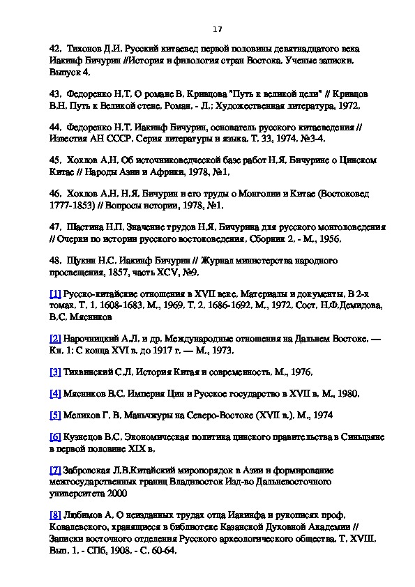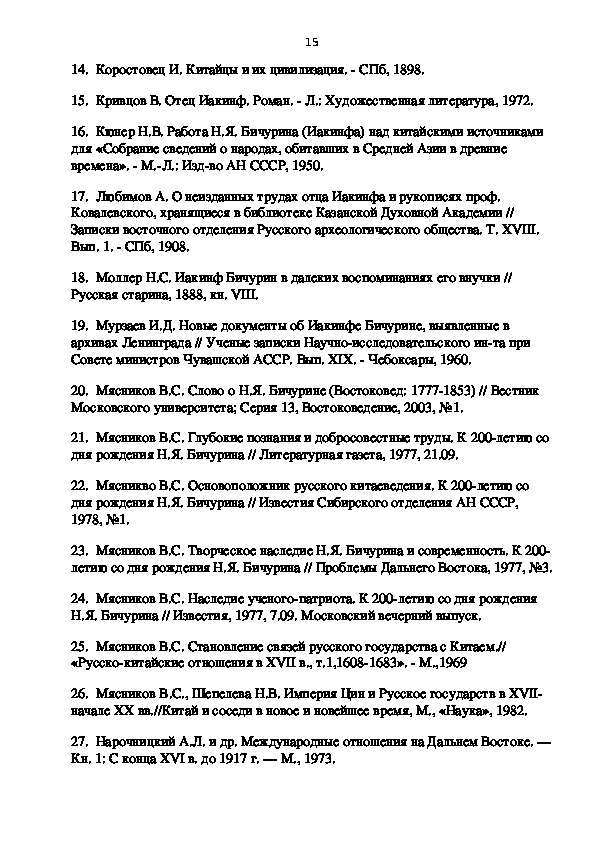 [15] Симоновская Л.В. Бичурин как историк Китая // Доклады и сообщения