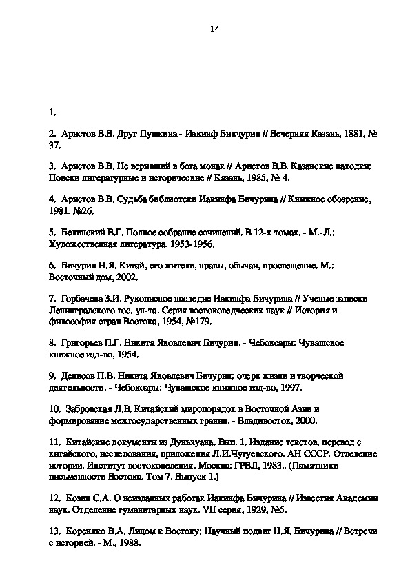 [45] Григорьев П.Г. Никита Яковлевич Бичурин. Чебоксары: Чувашское