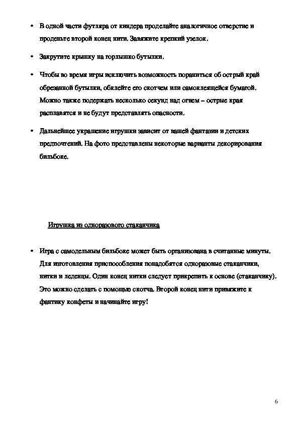 • Игра с самодельным бильбоке может быть организована в считанные минуты.