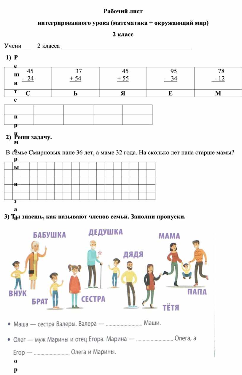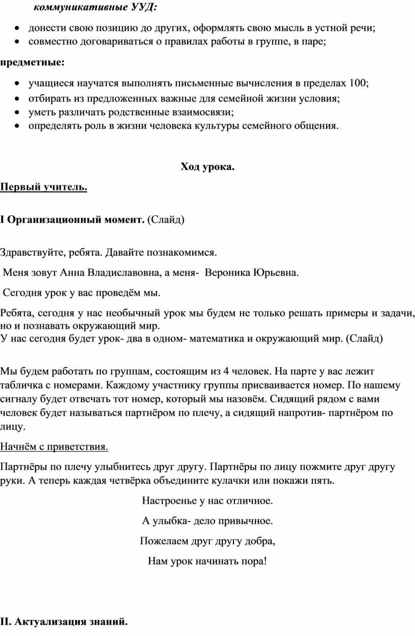 интегрированного урока (математика + окружающий мир)