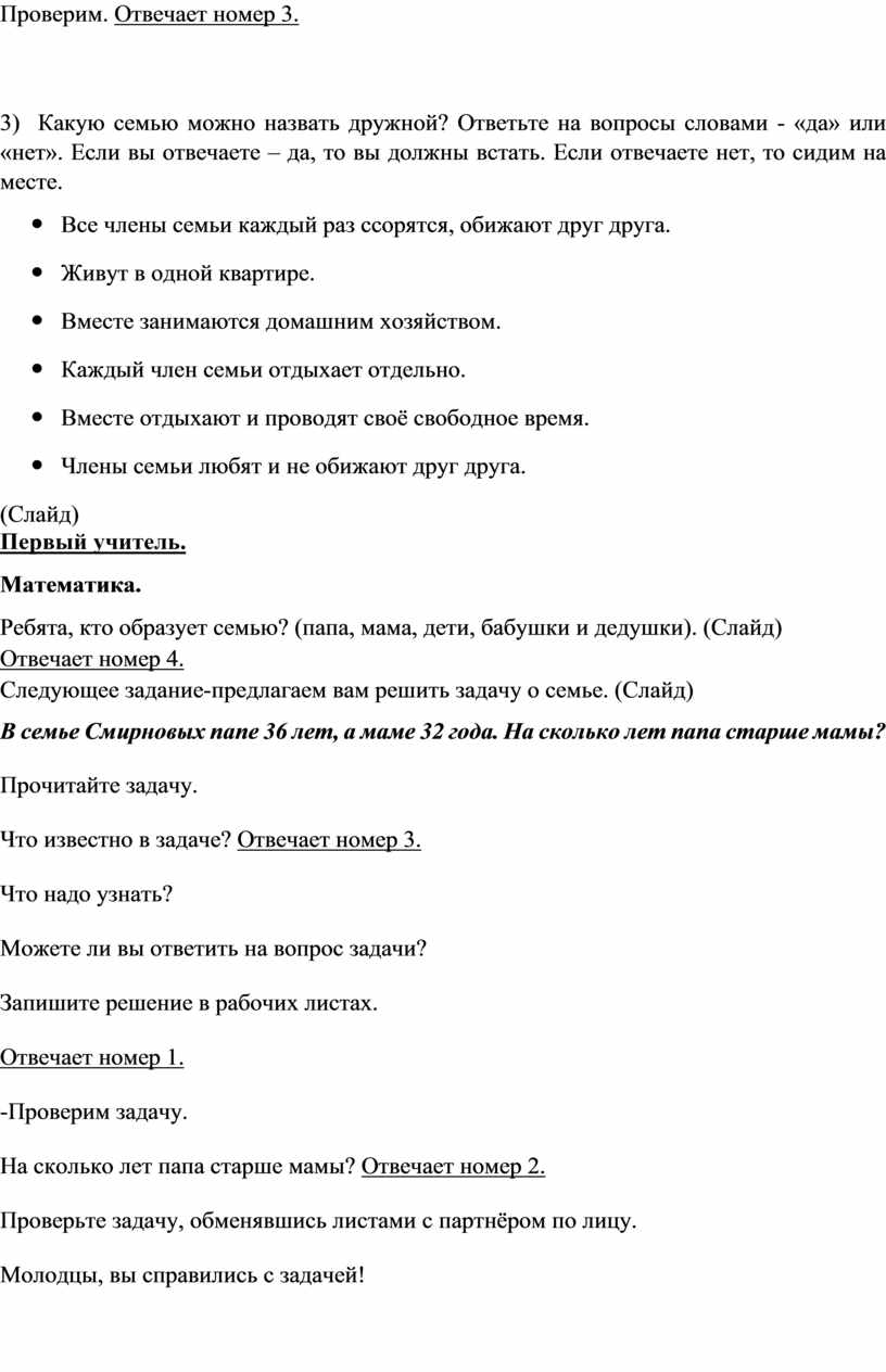 3) Какую семью можно назвать дружной? Ответьте на вопросы словами - «да» или «нет». Если вы отвечаете – да, то вы должны встать. Если отвечаете нет, то сидим на месте.