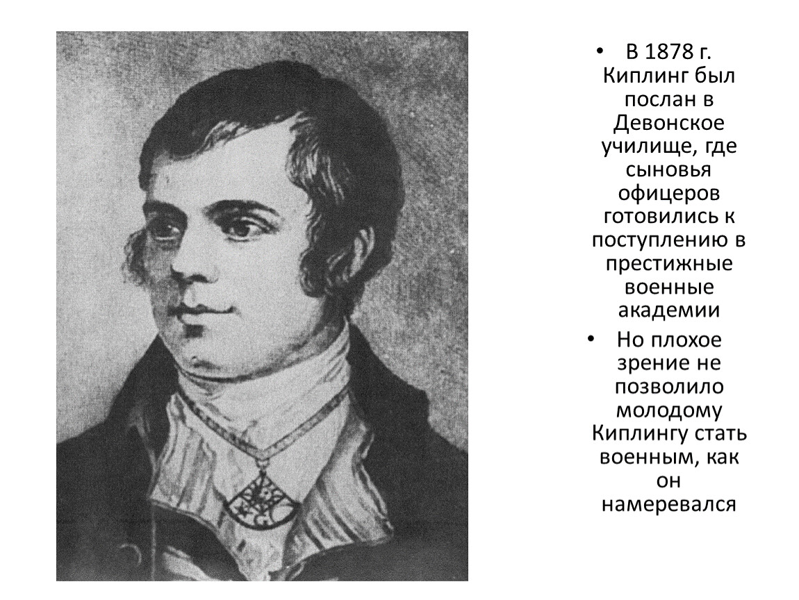 В 1878 г. Киплинг был послан в Девонское училище, где сыновья офицеров готовились к поступлению в престижные военные академии