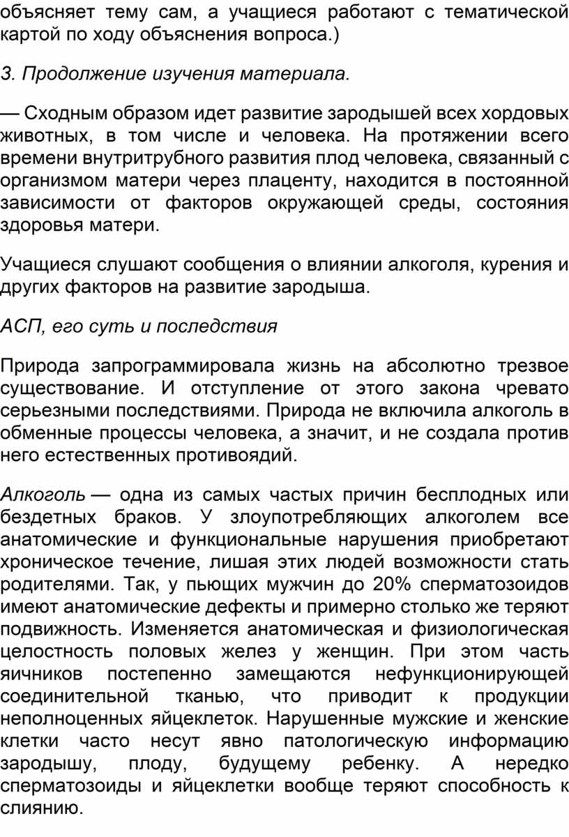Но если даже и произошло оплодотворение нарушенных алкоголем яйцеклеток и зародыш довольно благополучно прикрепился к