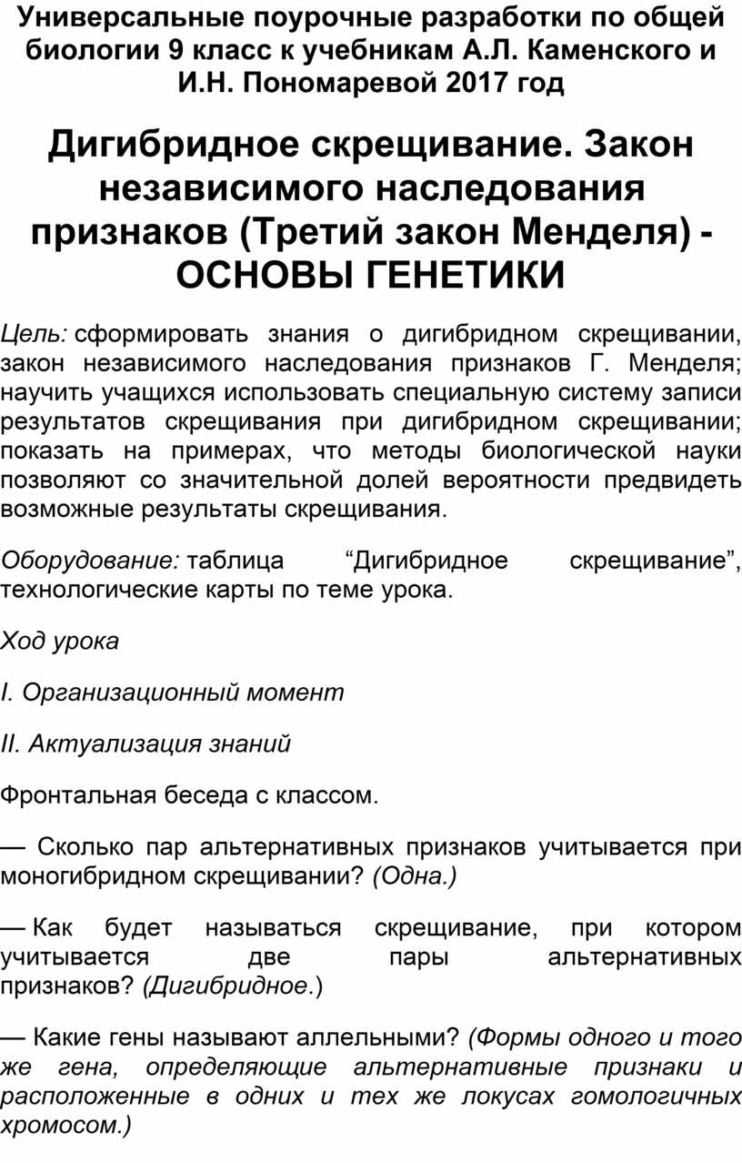Универсальные поурочные разработки по общей биологии 9 класс к учебникам А.Л. Каменского и И.Н. Пономаревой 2017 год