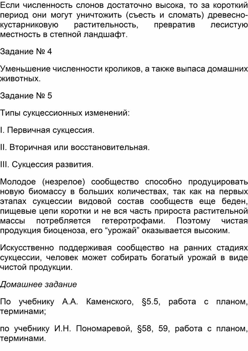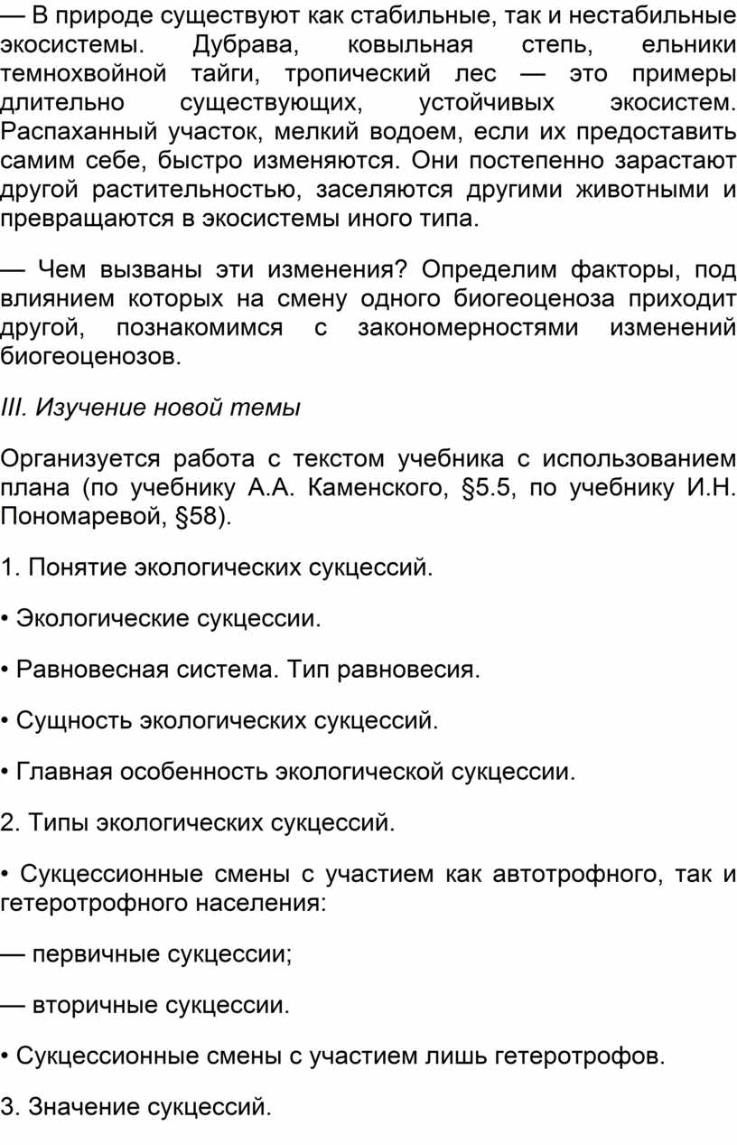 по учебнику И.Н. Пономаревой, §58, 59, работа с планом, терминами.