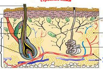 Задание № 2: Рассмотрите рисунок «Строение кожи». При помощи рис.71 стр.164 перечислите структуры кожи, изображенные на рисунке (на рисунке вашей карточки сами обозначаете цифру , а в отаете цифру и название структуры)