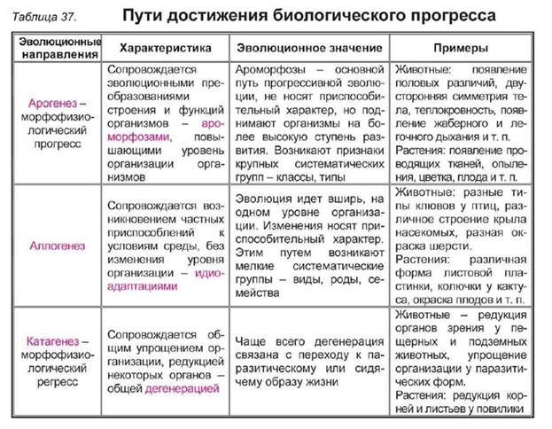 Биология в таблицах