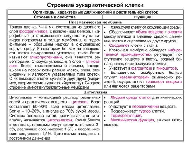 Биология в таблицах