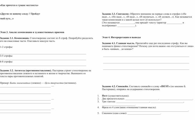 Задание 3.2. Антитеза (противопоставление). Пастернак строит стихотворение на противопоставлении ложного и истинного в жизни и творчестве. Выпишите из текста пары противоположных понятий.