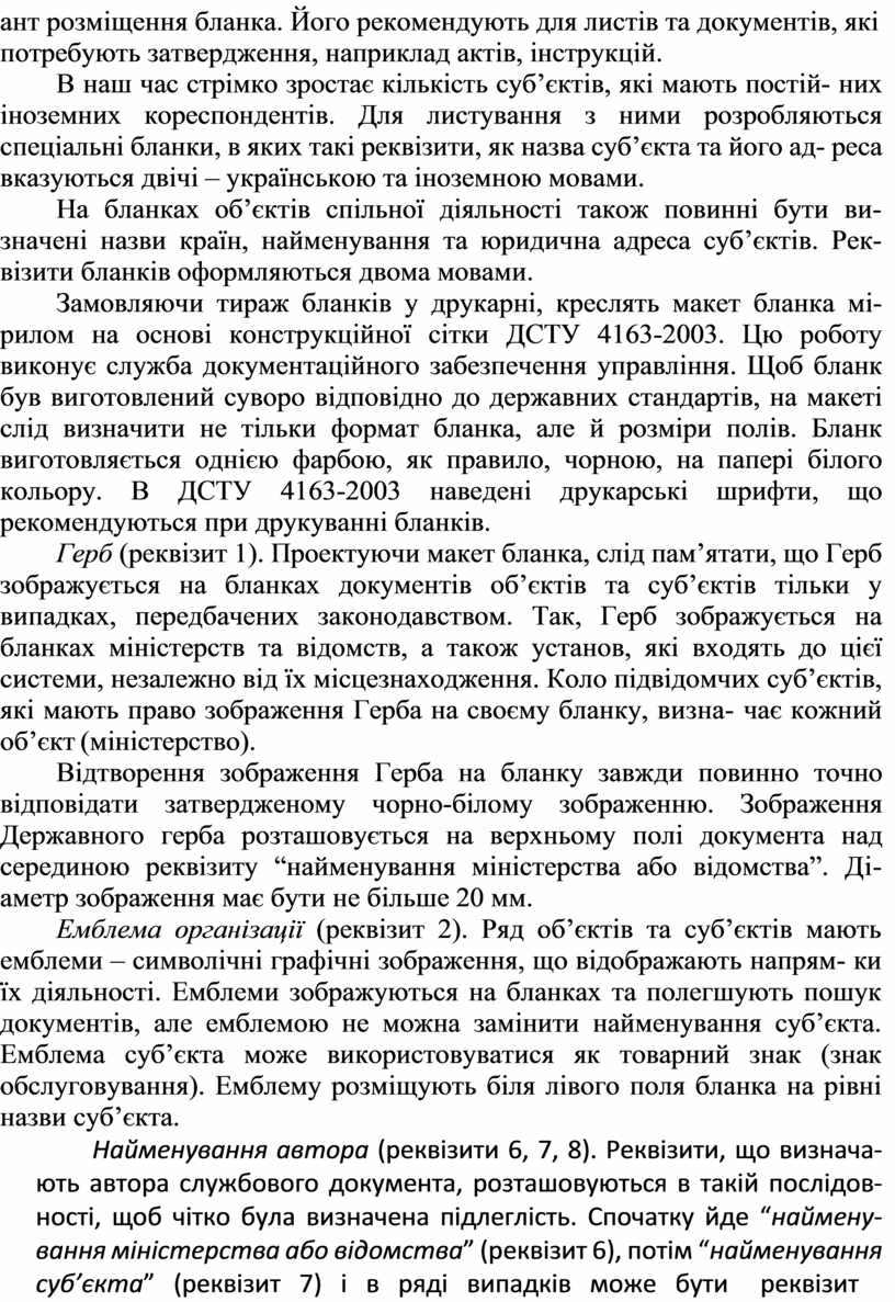 Основні вимоги до бланка визначає ДСТУ 4163-2003. Бланк по- винен бути надрукований у друкарні та набраний шрифтами, вказани- ми державним стандартом.
