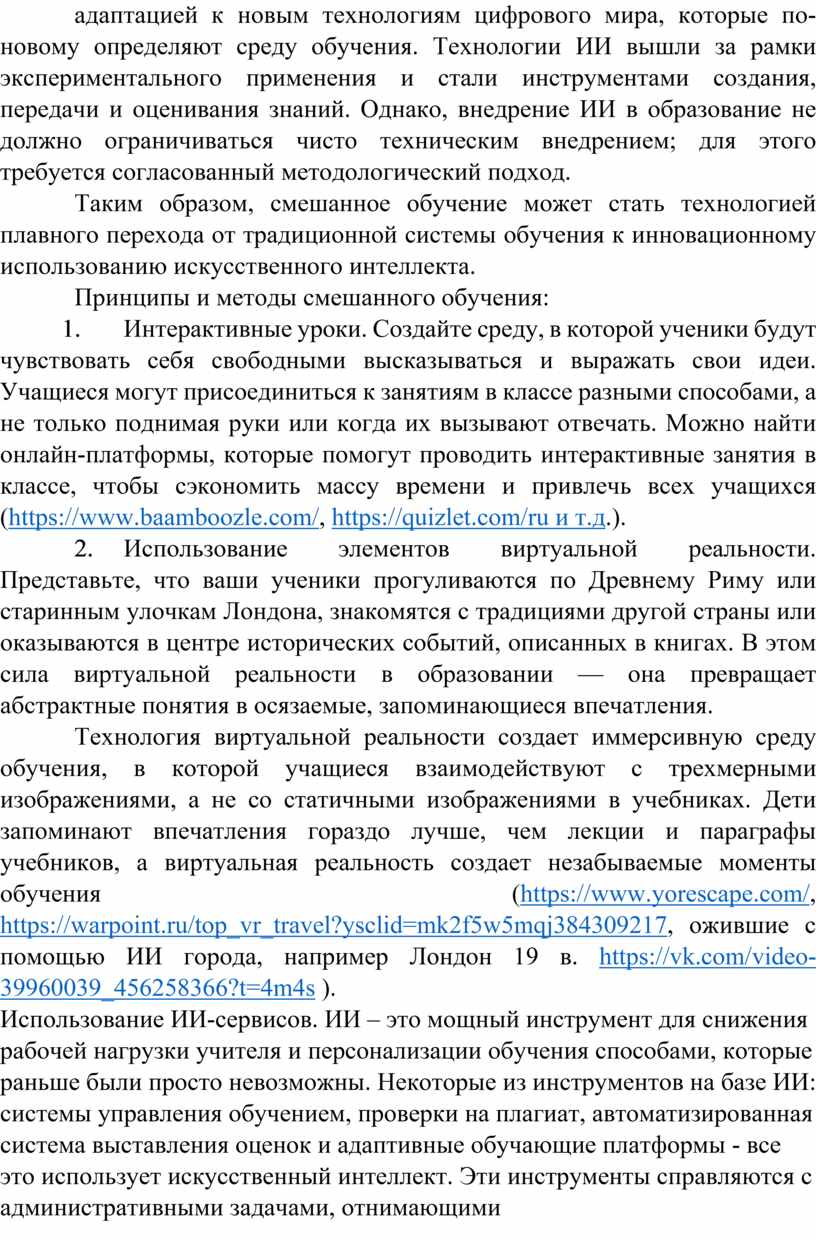 Таким образом, смешанное обучение может стать технологией плавного перехода от традиционной системы обучения к инновационному использованию искусственного интеллекта.