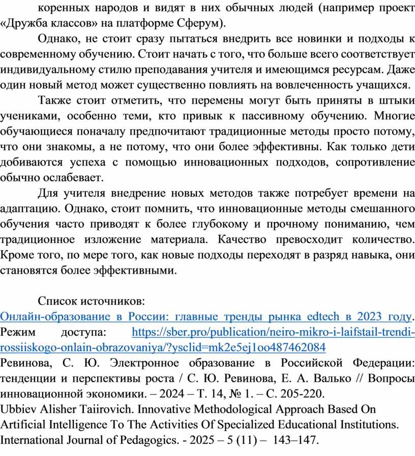1. Онлайн-образование в России: главные тренды рынка edtech в 2023 году. Режим доступа: https://sber.pro/publication/neiro-mikro-i-laifstail-trendi-rossiiskogo-onlain-obrazovaniya/?ysclid=mk2e5ej1oo487462084