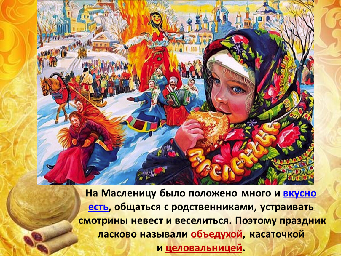 На Масленицу было положено много и вкусно есть, общаться с родственниками, устраивать