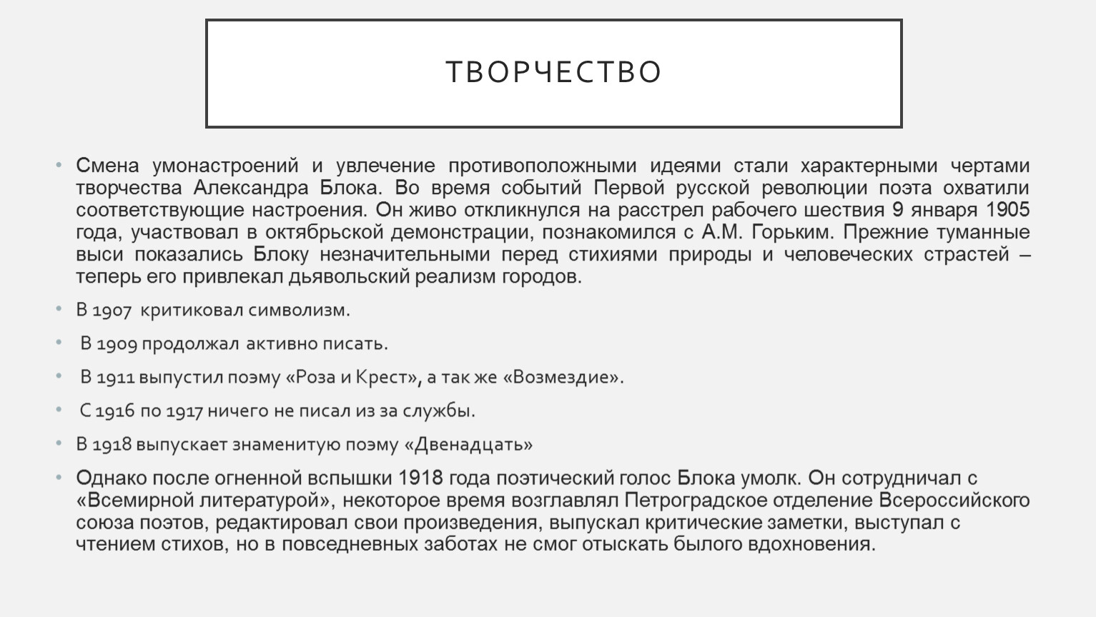 В 1918 выпускает знаменитую поэму «Двенадцать»