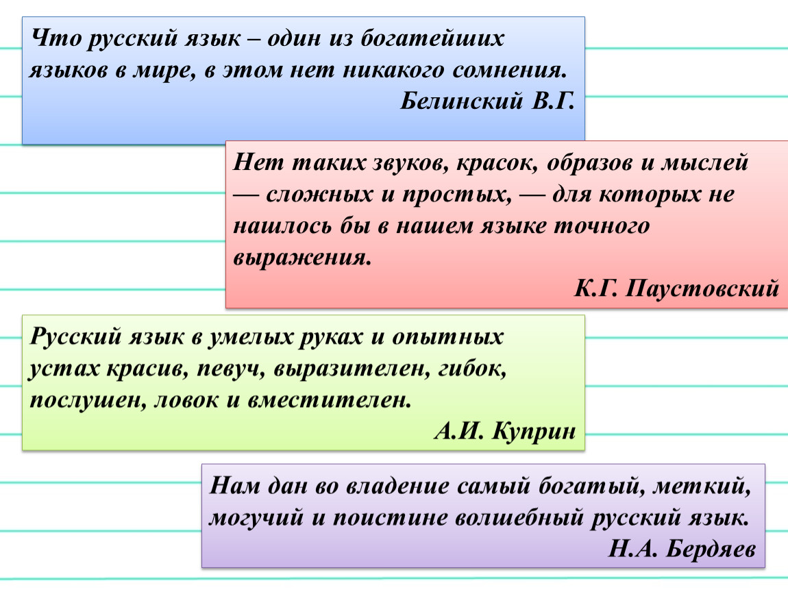 Нет таких звуков, красок, образов и мыслей — сложных и простых, — для которых не нашлось бы в нашем языке точного выражения.