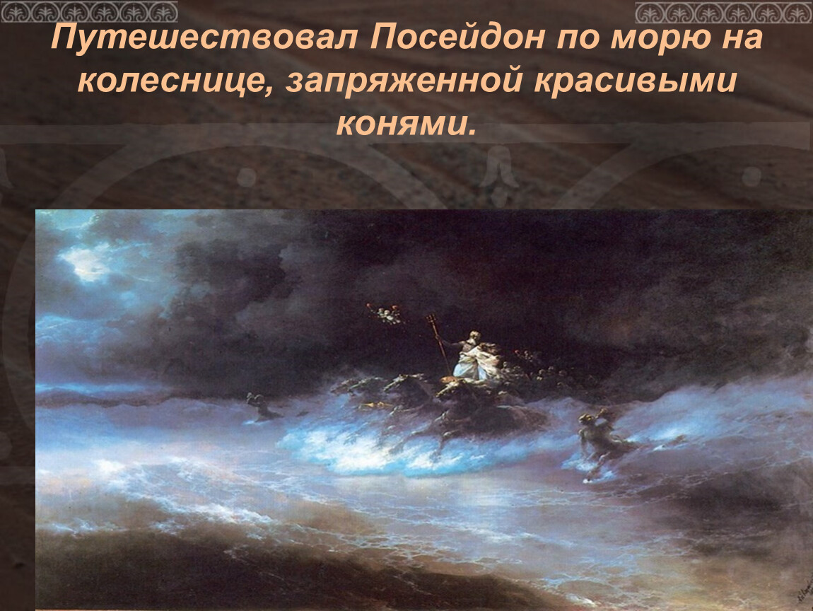 Глубоко в морской пучине стоит чудесный дворец колебателя Земли Посейдона. Властвует над морями Посейдон, и волны послушны малейшему движению его руки, вооруженной грозным трезубцем.