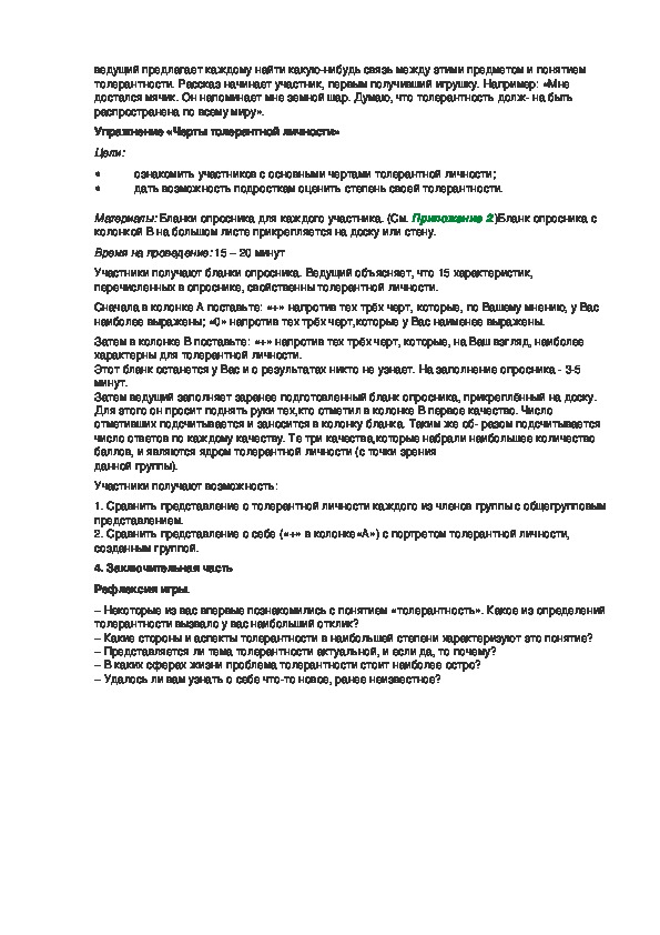 Упражнение «Черты толерантной личности»