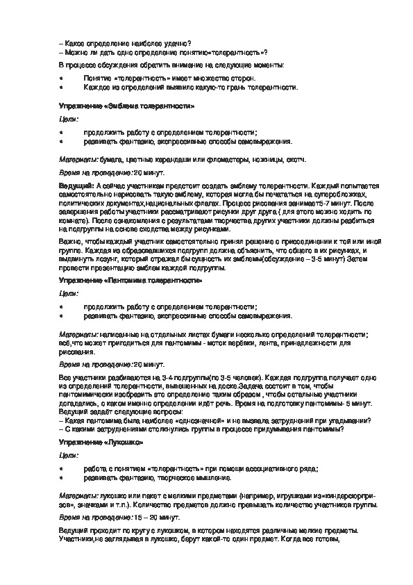 Материалы: Определения толерантности. (Написать эти определения следующим образом:на
