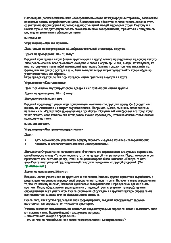 Упражнение «Что такое «толерантность»