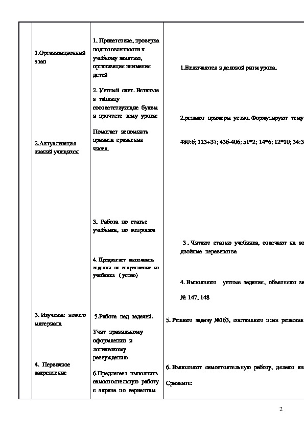 учить сравнивать натуральные числа и записывать результат сравнения в виде неравенства, читать и записывать двойные неравенства.