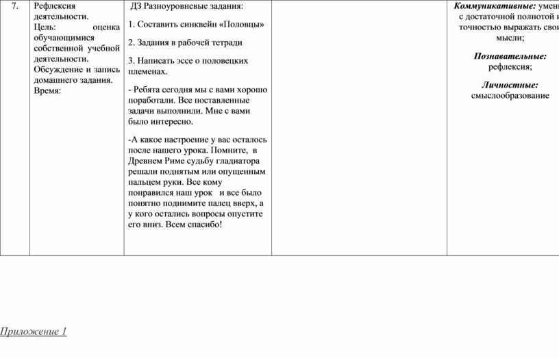 ДЗ Разноуровневые задания: 1. Составить синквейн «Половцы» 2. Задания в рабочей тетради 3. Написать эссе о половецких племенах. - Ребята сегодня мы с вами хорошо поработали. Все поставленные задачи выполнили. Мне с вами было интересно. -А какое настроение у вас осталось после нашего урока. Помните, в Древнем Риме судьбу гладиатора решали поднятым или опущенным пальцем руки. Все кому понравился наш урок и все было понятно поднимите палец вверх, а у кого остались вопросы опустите его вниз. Всем спасибо!