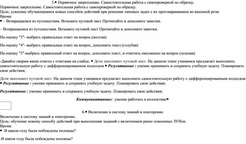 Включение в систему знаний и повторение. Цель: обучение новому способу действий при выполнении заданий с включением ранее освоенных ЗУНов. Время:
