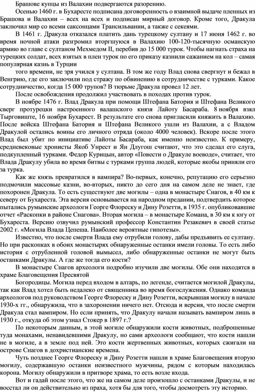 Богородицы. Могила перед входом в алтарь, по легенде, считается могилой Дракулы, так как Влад хотел быть недалеко от священника во время богослужения. Однако команда археологов под руководством Георге Флореску и Дину Розетти, вскрывшая могилу в начале 1930-х гг., обнаружила, что в захоронении ничего нет. Отсюда и версия, что после смерти Дракула стал вампиром. Но если принять, что Дракулу начали называть вампиром лишь в 1930 г., откуда об этом узнал Стокер в 1897 г.?