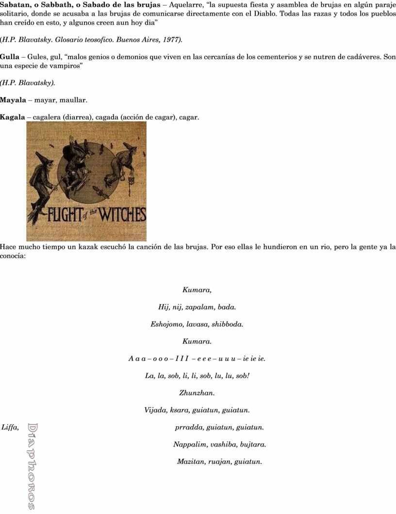 Sabatan, o Sabbath, o Sabado de las brujas – Aquelarre, “la supuesta fiesta y asamblea de brujas en algún paraje solitario, donde se acusaba a las brujas de comunicarse directamente con el Diablo. Todas las razas y todos los pueblos han creído en esto, y algunos creen aun hoy dia”