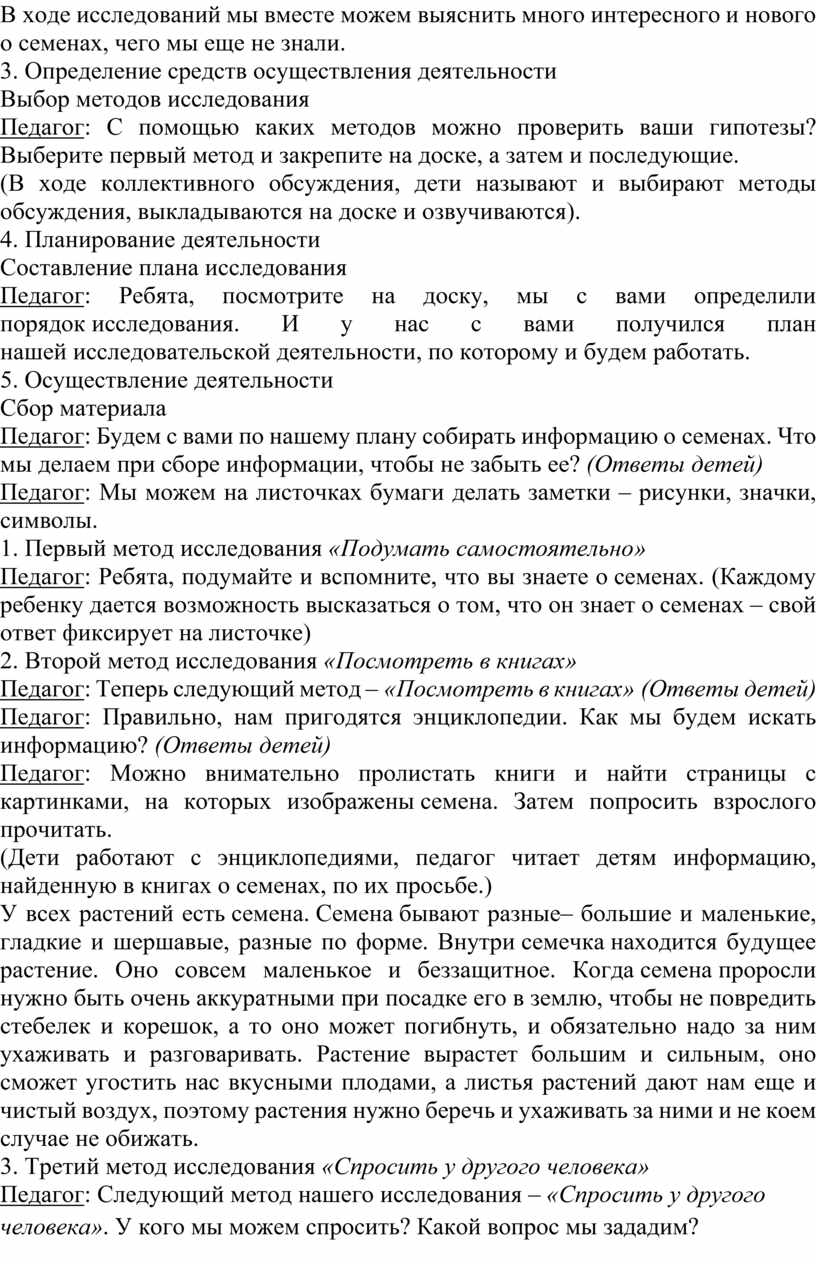 Педагог: Спросим, что такое семя? (Получив ответ взрослого, дети фиксируют его на листе бумаги).