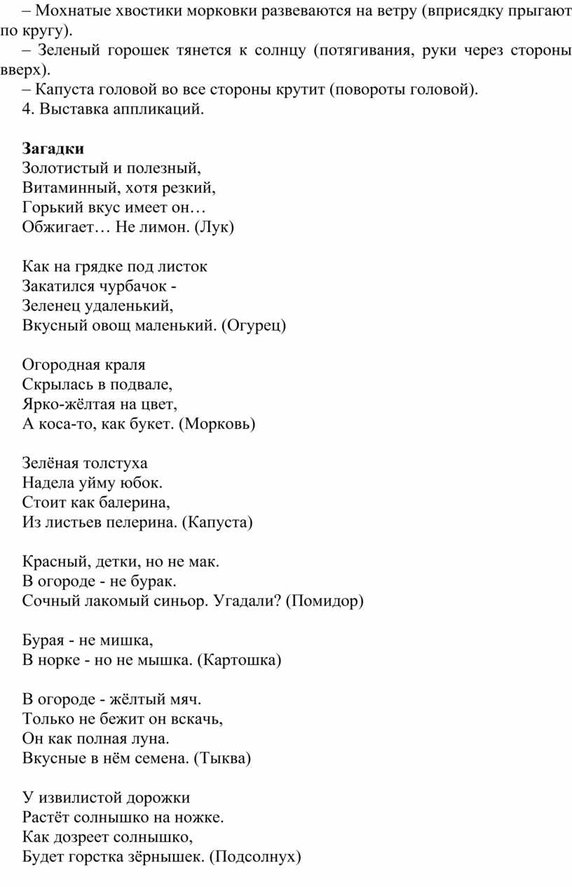 Капуста. – Из капусты варят щи. А какие вкусные пироги капустные! Угощу ребяток кочерыжкой сладкой.