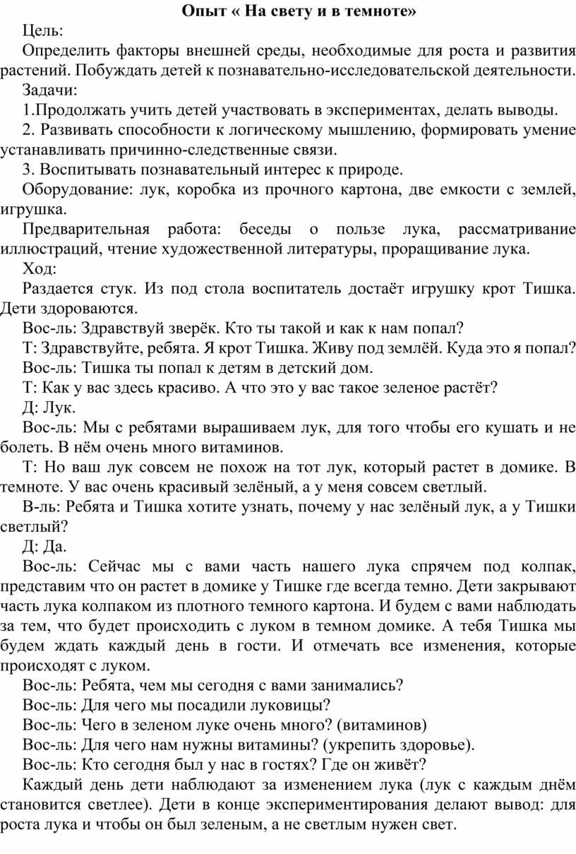 3. Обобщать представление детей о необходимости света, тепла, влаги для роста растений с помощью экспериментирования.