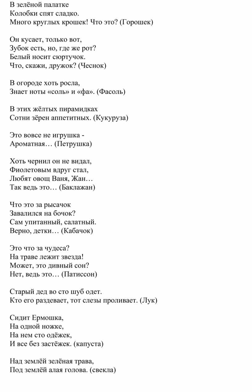 Овощи. – Кто из нас, из овощей и вкуснее и нужней, кто при всех болезнях будет всем полезней?