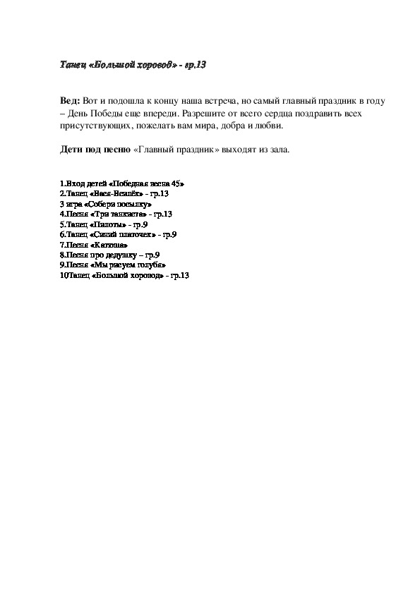 Вед: Вот и подошла к концу наша встреча, но самый главный праздник в году